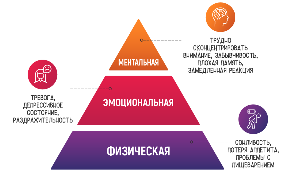 Все люди разные, поэтому трудно сказать, как усталость повлияет на ваш организм. Основные признаки усталости делятся на три категории и могут влиять на эмоции, мысли и поведение: